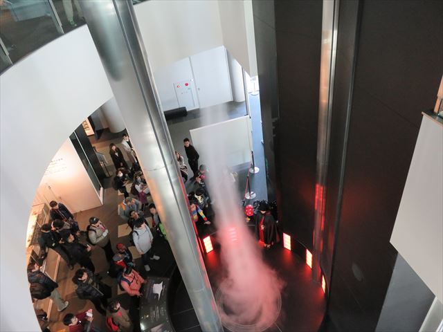 -30℃の世界を体感できる極寒ラボ、2基のテスラコイルから放たれる電気火花の爆音を体感できる放電ラボ、高さ9メートルに及ぶ人工竜巻を観察できる竜巻ラボなどの大型展示に加え、触って楽しめる小型展示も充実しており、平日にもかかわらず多くの小中学生で賑わっていた。日常生活において、小中学生の集団を物理的に近距離で感じられる機会は皆無に近いため、少なからず高揚したことは言うまでも無い。結構な穴場と思われる。